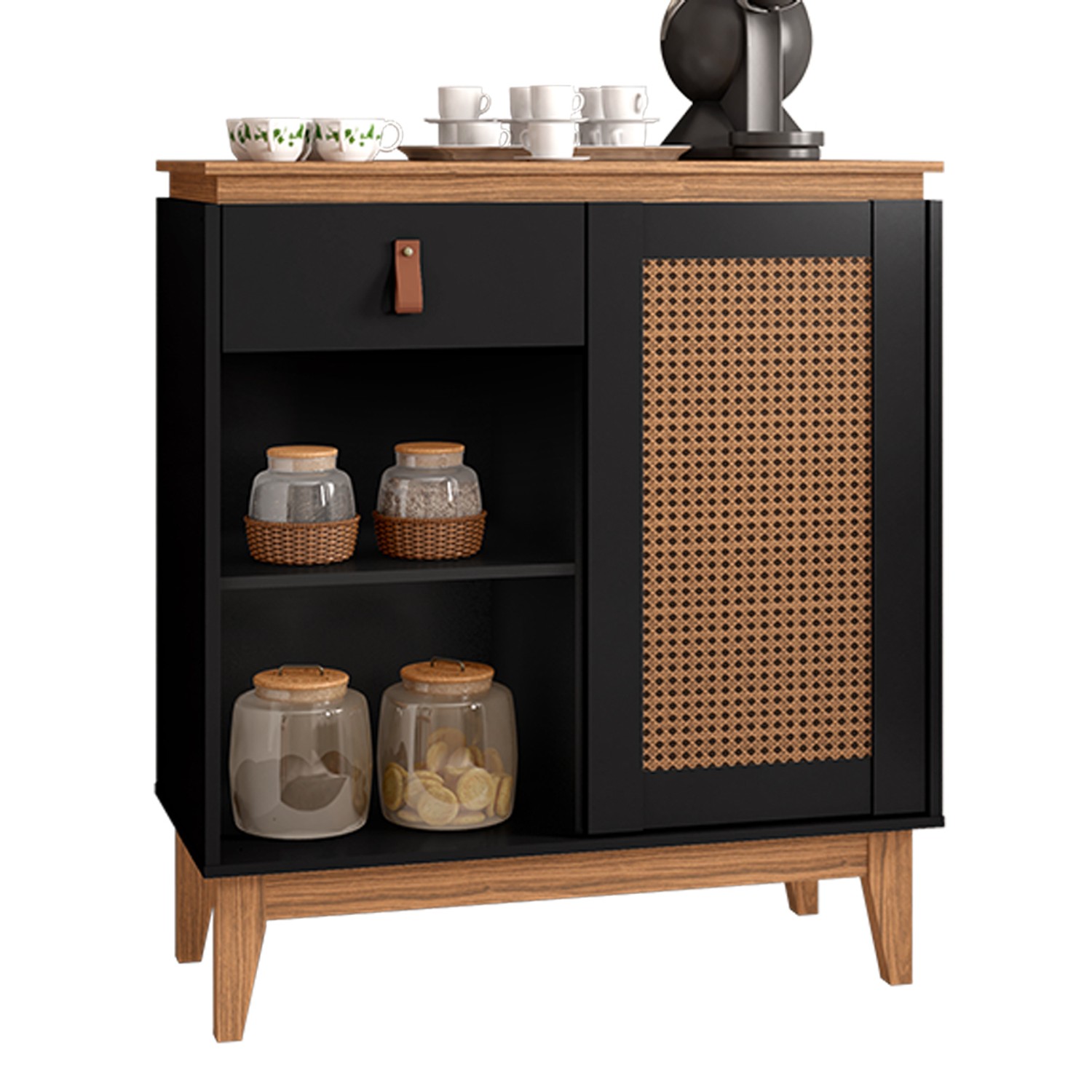 Aparador 1 Porta 1 Gaveta Marrom/Preto - Panorama Sistemas
