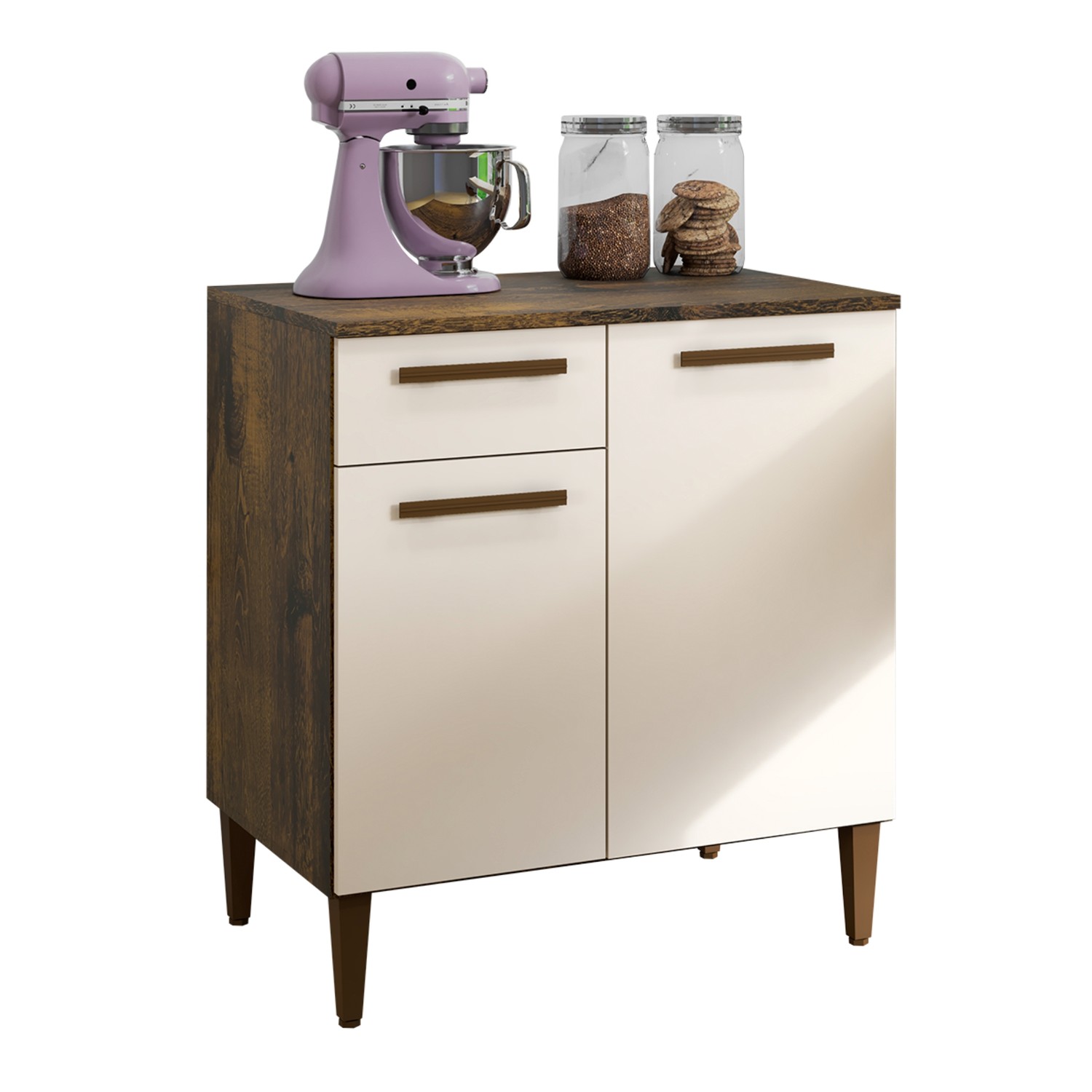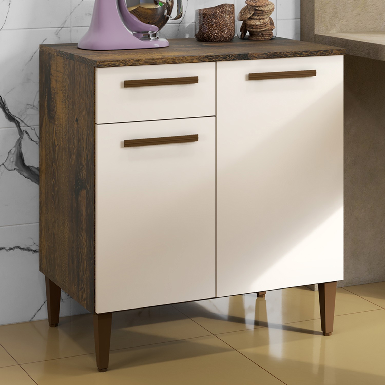 Armário de Cozinha 2 Portas 1 Gaveta Marrom/Bege - Panorama Sistemas