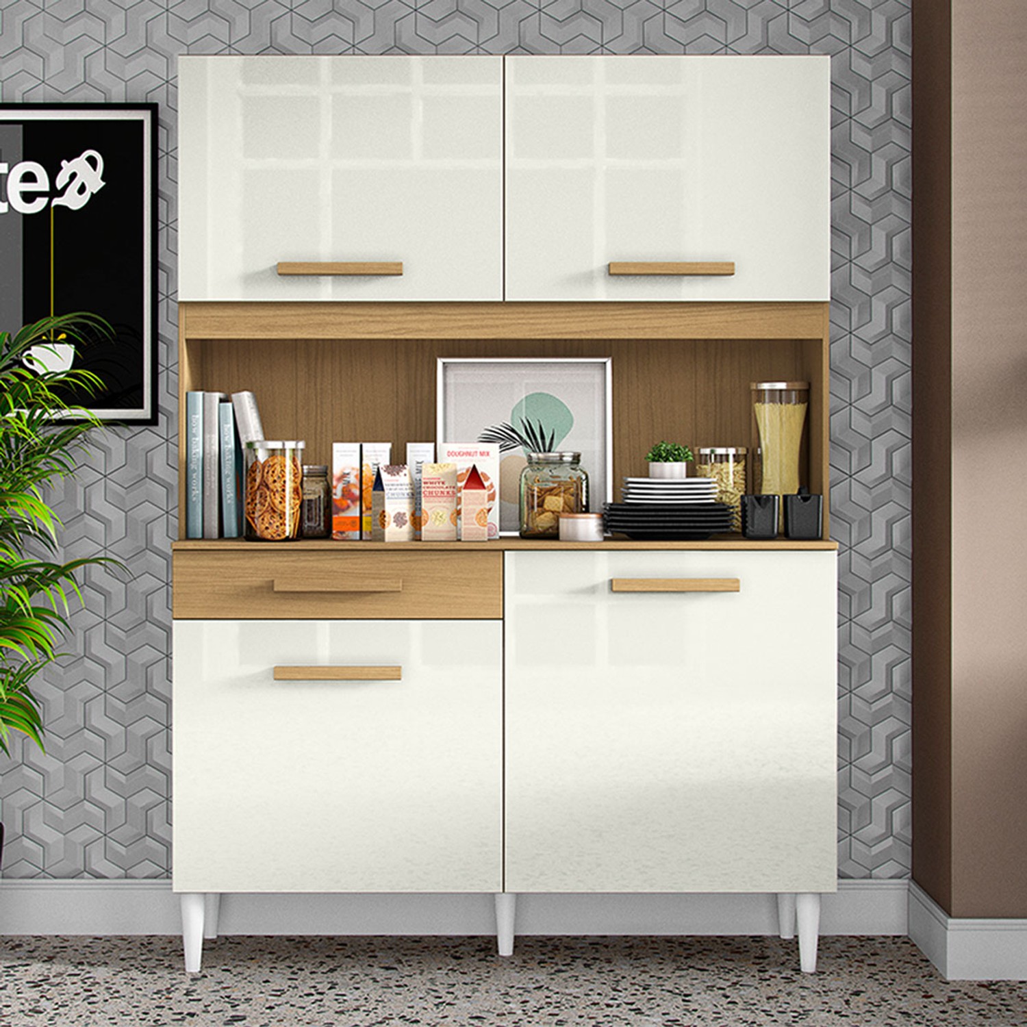 Armário de Cozinha 4 Portas 1 Gaveta Arcoz Marrom/Bege - Panorama Sistemas