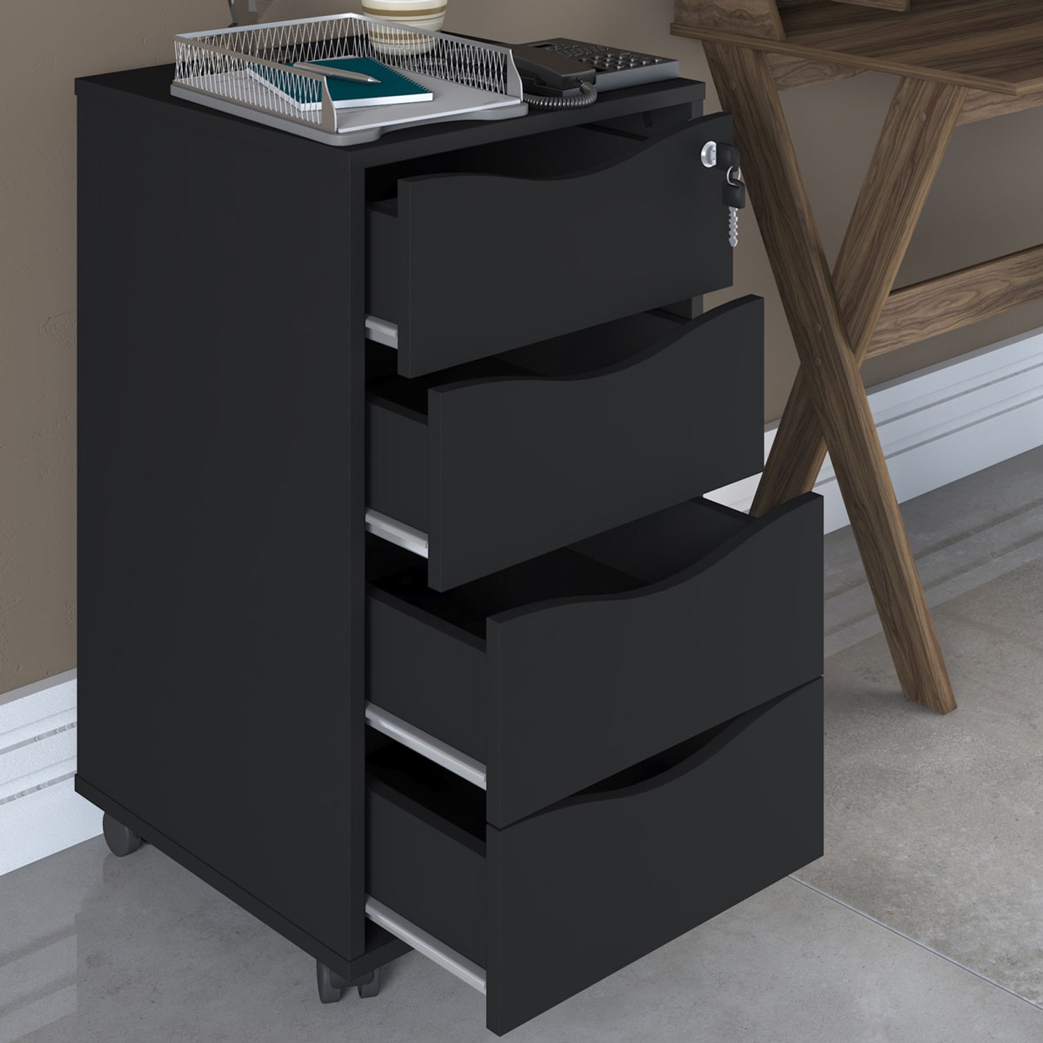 Gaveteiro 4 Gavetas com Chave Preto - Panorama Sistemas