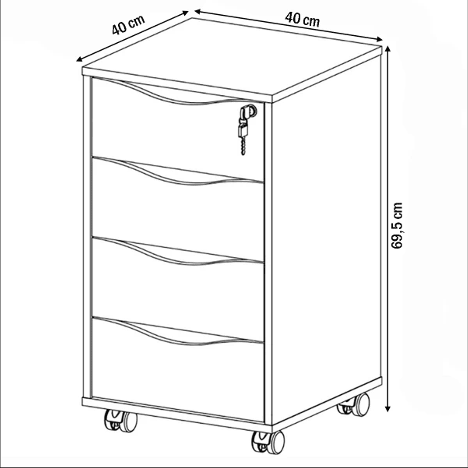 Gaveteiro 4 Gavetas com Chave
