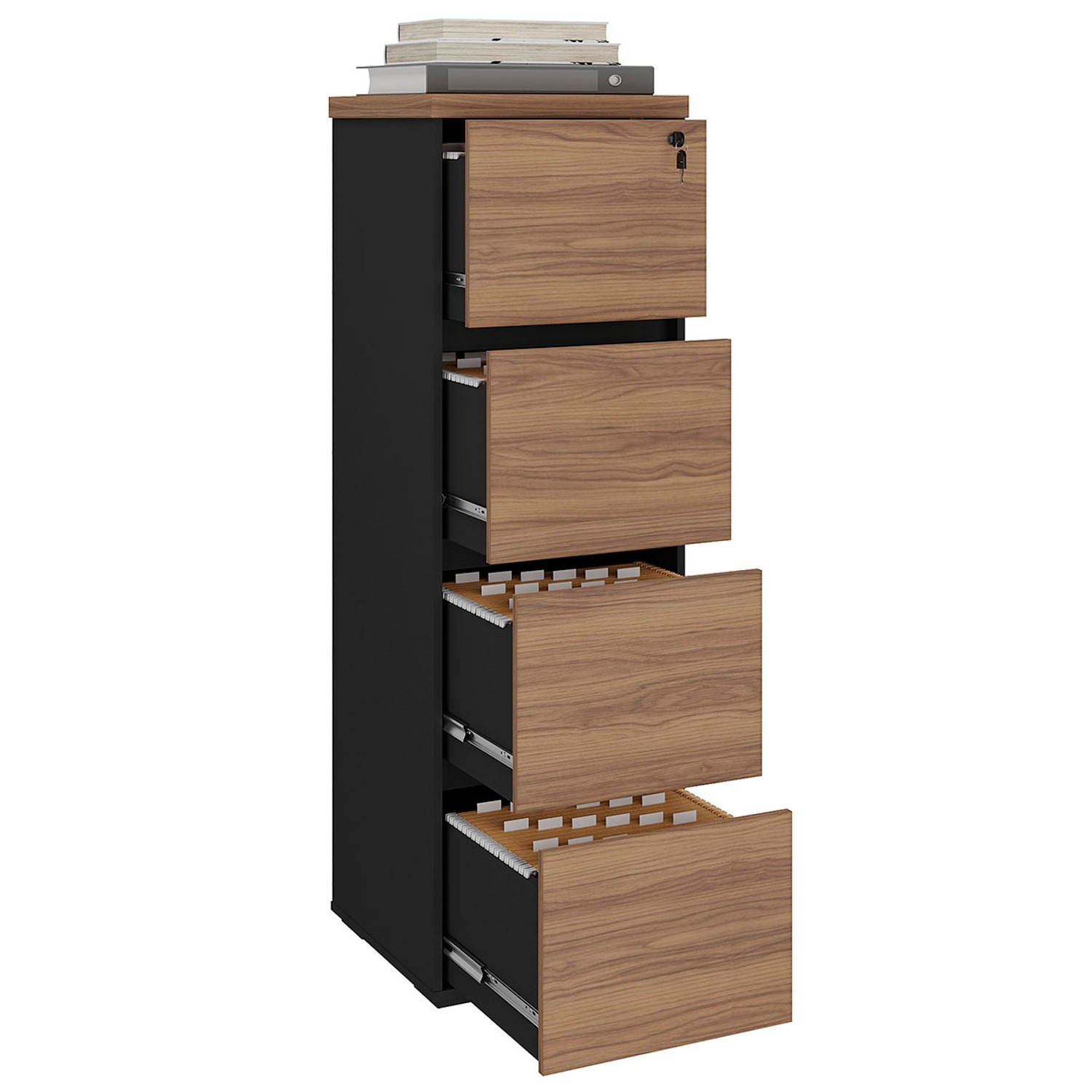 Gaveteiro Arquivo 4 Gavetas Marrom/Preto - Panorama Sistemas