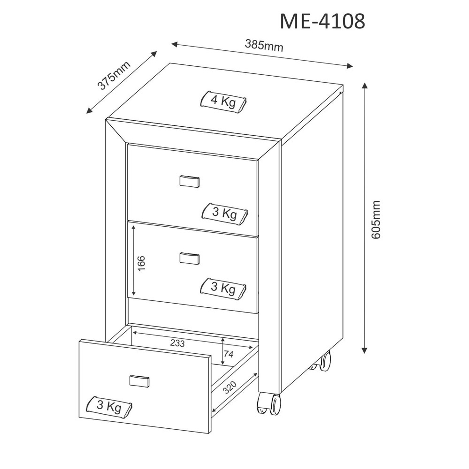 Peso Suportado nas Gavetas (Kg) 3 Kg