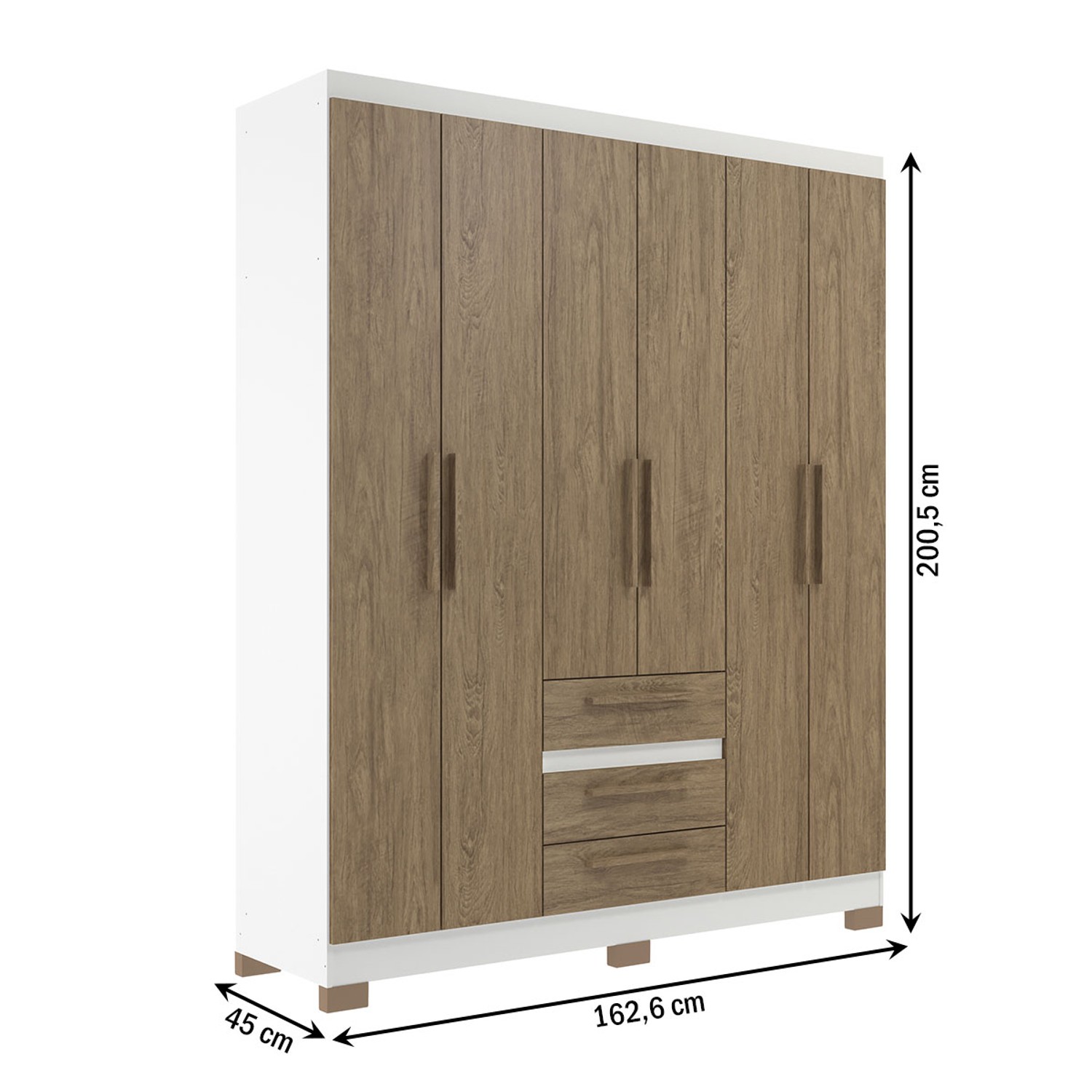 Guarda Roupa Casal 6 Portas 3 Gavetas Branco/Marrom - Panorama Sistemas